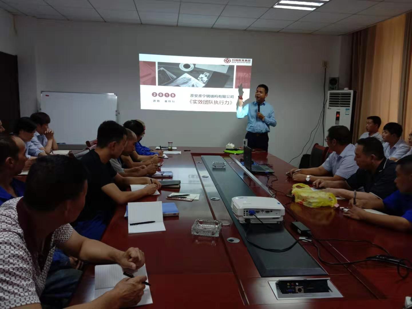 為不斷提升公司全體管理人員的管理創(chuàng)新能力、技術(shù)創(chuàng)新能力、市場(chǎng)開拓能力,努力打造一支具有較強(qiáng)經(jīng)營管理水平的人才隊(duì)伍,2019年8月15日淮寧鋼結(jié)構(gòu)有限公司在公司第二會(huì)議室舉辦了以提高執(zhí)行力為重點(diǎn)的企業(yè)管理知識(shí)培訓(xùn)班。